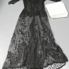 A late 19th Century black machined lace dress with silk and bead embroidered decoration, together with a set of twelve Edwardian linen place mats, embroidered with the initials 'E.L.'.