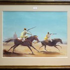 John Skeaping - Two Eastern Horse-riders holding Rifles, watercolour with gouache, signed and dated '71, approx 52.5cm x 74cm, within a gilt frame.