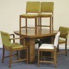 An Art Deco walnut dining room suite, comprising a draw-leaf table, a sideboard, and a set of six chairs (two carvers, four standard).