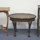 An early 20th Century mahogany oval occasional table with a piecrust border, on cabriole legs and claw and ball feet, together with two other occasional tables.