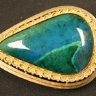 A gold mounted blue/green gem set pendant of drop shaped form decorated with a beaded border.