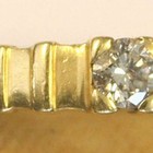 An Egyptian gold and diamond set single stone ring, mounted with a circular cut diamond between stepped shoulders.