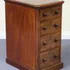 A Victorian figured mahogany chest of four drawers, fitted with turned handles, on a plinth base, height approx 80cm, width approx 44cm (formerly a desk pedestal).