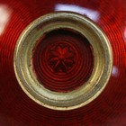An early 20th Century Russian Fabergé two-colour gold and enamel gum pot, 56 zolotnik, the rose gold detachable brush with cabochon moonstone finial, the compressed spherical body enamelled in translucent strawberry red over flower swags and pendants on a waved guilloche sunray ground, the rose gold collar with yellow gold leaf band, workmaster's 'H.W.' mark of Henrik Wigström and '56 AP' mark of assay master Alexander Romanov to collar and brush fitting, height approx 4.5cm.