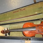 A late 19th/early 20th Century violin with one-piece lightly figured back, length of back excluding button 35.5cm, cased, with a bow.