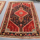 A Hamadan rug, North-west Persia, mid/late 20th Century, the midnight blue field with a red medallion and spandrels, within a vine border, approx 222cm x 140cm.