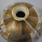 A Japanese Satsuma earthenware vase, probably Kinkozan, Meiji period, the compressed ovoid body painted and gilt with opposing figural panels, within simulated brocade, mille fleurs and butterfly borders, on a circular foot, height approx 14cm (restoration to foot).