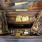 An early 20th Century carpenter's trunk, containing various woodworking tools.
