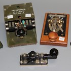 Two military Morse keys, a Hi-Mound Morse key and two other Morse keys.
