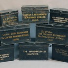 LEGAL DOCUMENTS & PARTICULARS. A large quantity of printed and manuscript ephemera, mostly 19th and 20th Century, including deeds, indentures, house and estate particulars, cheques, share certificates, receipt books and plans, the majority relating to Oxfordshire, but also Berkshire, London, Essex and elsewhere, all contained within twelve painted tin boxes with unrelated estate names and one other box.