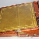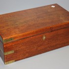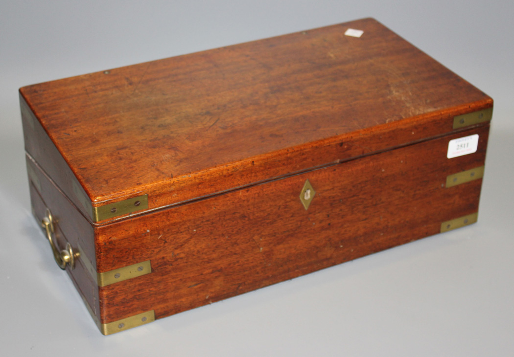 A late George III mahogany writing slope with brass bound corners and a fitted interior, width approx 45cm.