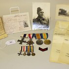 A group of four First World War awards to James Roland West, comprising Military Cross, George V issue, 1914-15 Star to '2365, Pte. J.R. West. Berks. Yeo.', 1914-18 British War Medal and 1914-19 Victory Medal to 'Capt. J.R. West.', mounted on a bar as worn, with the four corresponding dress miniature medals (James West died on 13th April 1942, aged 47, when serving as a Captain in the 5th Dorset Battalion Home Guard, as a result of 'misadventure' when shot and killed during a flying demonstration), together with a 'Copy inquisition taken on view of the body of James Roland West', copy witness statements taken at the inquest subsequent to the event, in which twenty-seven officers and men were accidentally killed during a flying demonstration at Imber on 13th April 1942, a military identity card with photograph, a photograph, a Christmas card, dated 1938, an In Memoriam poem cut from a newspaper, the ribbon from a Defence Medal and a red chevron textile badge.
