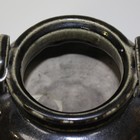 A Chinese black/dark green glazed porcelain ding censer, possibly Yuan dynasty, the squat globular body with a pair of upright handles, on tripod feet, bearing paper collectors' label to base, height approx 14cm, together with a hardwood cover.
