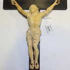 A 19th Century Continental carved ivory Corpus Christi, height approx 21cm, mounted upon an ebony cross with applied 'INRI' plaque, total height approx 36cm.