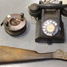 A black telephone, the baseplate marked '332CB', together with a mahogany star back fishing reel and a gun stock by W.W. Greener, Birmingham (faults).