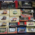 A Corgi Classics No. 97198 Guy Arab double deck bus 'Southdown', five other double deck buses, a Corgi Vanguards Hillman Minx, a Morris Minor Traveller, an Original Omnibus Company Bristol Lodekka 'Southdown', a Corgi tank, three EFE buses and coaches, two Matchbox Models of Yesteryear, a Solido Renault bus, a Road Signature 1-18th scale model of a 1947 MG TC Midget and a Minichamps T34/76 tank, all boxed (some boxes creased or scuffed).