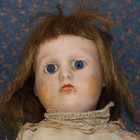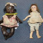 A bisque head doll, impressed 'Y3Y', with brown wig, fixed blue eyes, painted features and jointed composition body, height approx 28cm, and a composition black doll with bent limb body, both clothed.