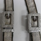 A scarce Third Reich government official's dagger by Alcoso with straight double edged blade, length approx 25.5cm, silver plated hilt with stylized eagle's head pommel, crosspiece embellished with two applied brilliants inset between eagle's head and wings, simulated mother-of-pearl grips with dress knot, in its plated sheath with silver bullion embroidered suspension straps, green velvet backing.