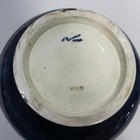 A Moorcroft pottery vase, circa 1928-1949, the globular body painted with shaded yellow to dark blue decoration, on a circular foot, impressed factory marks including facsimile signature to base, height approx 20cm.