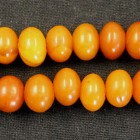 A single row necklace of sixty-two graduated oval and spherical mottled opaque butterscotch coloured amber beads, gross weight approx 33.4g, total length approx 61.5cm, length of each oval bead approx 1.5cm, diameter of each spherical bead approx 9mm.