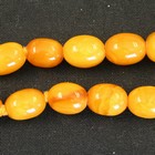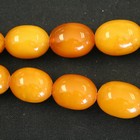 A single row necklace of fifty-one graduated oval mottled opaque butterscotch coloured amber beads, gross weight approx 65.9g, total length approx 76.5g, length of largest bead approx 2.3cm, length of smallest bead approx 8mm.