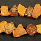 A single row necklace of fifty-one irregular vari-coloured opaque and translucent amber beads, gross weight approx 113g, total length approx 91cm, beads of varying length between approx 2cm and 3cm.