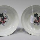 A pair of Chinese famille rose porcelain shallow circular dishes, probably late 19th/early 20th Century, each exterior painted with Buddhistic lion cubs and vapours, each interior with a similar single lion cub to the centre, pseudo printed iron red seal mark to bases, diameter approx 20cm (one with small hairline and rim chips, the other with minor rim chips).