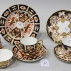 A small group of Royal Crown Derby Japan pattern teaware, comprising tea cup, saucer, side plate, cream jug and sugar bowl, pattern number '2451', together with a Royal Crown Derby trio, pattern number '3788' to bases.