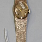 A Tudor 9ct gold lady's bracelet wristwatch, the signed oval gilt dial with baton shaped numerals and white hands, on a tapering bracelet with a bark textured finish, the fold-over clasp Birmingham 1973, with original case and box.