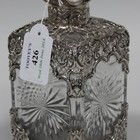 An Edwardian silver mounted cut glass decanter and matched stopper, of square form, the mounts pierced and embossed with flowers, scrolls and lattice beneath four pouring lips to collar, London 1901 by William Comyns, height approx 19cm.