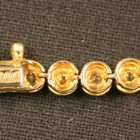 An 18ct gold and diamond set line bracelet, collet set with a row of circular cut diamonds, on a snap clasp indistinctly stamped '2.00', with a fold-over safety catch.