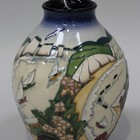A Moorcroft pottery vase, designed by Rachel Bishop, circa 2012, the ovoid body decorated with a coastal scene of cliffs, boats, a church and cottages, painted and impressed factory marks and signature to base, height approx 21cm.