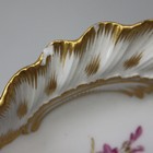 A Meissen porcelain oval cabaret tray, early 20th Century, painted with a spray of flowers framed by further scattered flowers and insects, with moulded gilt enriched handles and rim, crossed swords in underglaze blue to base, length approx 45.5cm (chip to rim).