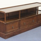 A 20th Century oak sideboard, the top fitted with a three-quarter gallery above three drawers, on a plinth base, height approx 75cm, width approx 98cm.
