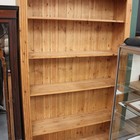 A modern pine open bookcase, the moulded pediment above fluted sides, on a plinth base, height approx 198cm, width approx 122cm.