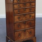 An early/mid-20th Century George II style walnut chest of six drawers with crossbanded decoration, on bracket feet, height approx 89cm, width approx 49cm.