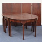 A George III and later mahogany 'D' end dining table with a central section and four further leaves, on moulded block legs, overall length approx 365cm, width approx 114cm (alterations).