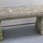 A 20th Century cast composition stone bench on a pair of scroll supports, width approx 116cm, together with a rectangular planter.