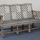 A late 20th Century suite of oak 'Cockpen' garden furniture, after a design by Sir Edwin Lutyens, comprising eight armchairs and a bench, all raised on turned and block legs.