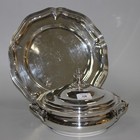 A plated circular two handled tureen, cover and stand with reeded wavy rims.