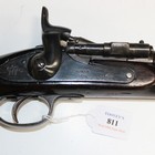 A .577 Snider Enfield two band breech loading service rifle, with sighted barrel, length approx 78.5cm, with side mounted bayonet lug, plain lock struck with crown and tower 1868, full stocked with steel furniture, including sling swivels (refinished overall, barrel appears to have ring bulge).