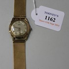 A Trebex gold circular cased gentleman's wristwatch, the signed silvered dial with Arabic numerals and subsidiary seconds, on an associated gold woven mesh link bracelet with a fold-over clasp detailed '18K'.