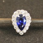 A gold and platinum fronted, sapphire and diamond set bar brooch, mounted with the pear shaped sapphire within a surround of cushion shaped diamonds, on a plain platinum fronted gold bar, detailed '15ct', with a case.