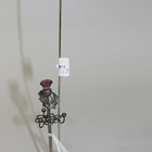 An Edwardian silver ring stand with thistle and amethyst coloured paste surmount, the circular base with pin cushion, Birmingham 1907 by Adie & Lovekin Ltd, height approx 10.5cm, together with a similar hat pin of thistle form.