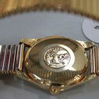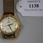 An Omega Seamaster Automatic 18ct gold circular cased gentleman's wristwatch, the signed circular silvered dial with gilt tapered baton shaped numerals and centre seconds, on a gilt metal fronted expanding bar link bracelet.