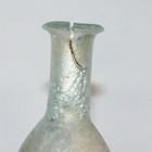 Two Roman glass Amphora, one of green iridescent colour, height approx 16.5cm, the other pale green tinted with darker green loop handles, height approx 19cm, together with a group of four other Roman glass vessels, heights ranging from approx 6.8cm to 8cm (some faults).