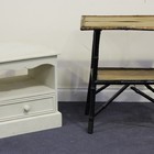 A late 20th Century cream painted bedside table, fitted with a drawer, width approx 50cm, together with a Victorian bamboo table.