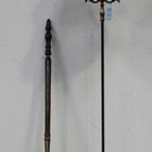 A 20th Century gilt metal two branch lamp standard and a Victorian copper warming pan.