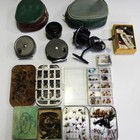 A Hardy Bros Ltd 'The Perfect' 3 3⁄8ins fishing reel, two Hardy Bros Ltd 'Perfection' split cane two piece rods, a Hardy Bros Ltd aluminium fly case, a split cane rod by E. Gale & Son Ltd, Barnstaple and Bideford, another rod, two other reels and a collection of flies.