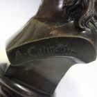Celéstin-Anatole Calmels - a pair of dark brown patinated cast bronze busts of Jesus Christ, wearing a crown of thorns, and the Virgin Mary, titled 'Ecce Homo' and 'Mater Dei' respectively, on turned socle bases, each bearing cast signature 'A. Calmels' to side, height approx 28.5cm.